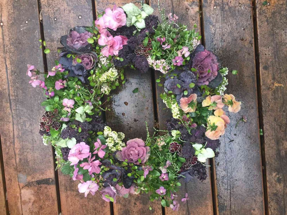 ミニハボタンとダブル咲きパンジーなどのギャザリングリース。