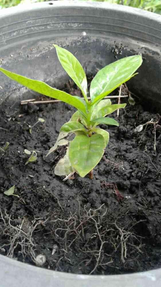 先月、約1年掛かって発芽したアラビアコーヒー黄実種をプランターから分離移植しました。