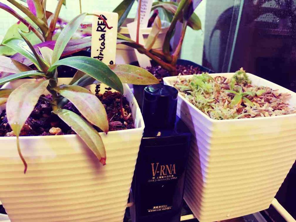 phszyさんに教えてもらったバイタルV.rnaです。真ん中の高そうな発毛剤みたいなボトルのがそうです。早速買って見ました^_^このベントリコーサレッドがどうも根つきが悪く大きくならないので、試しにあげてみました。