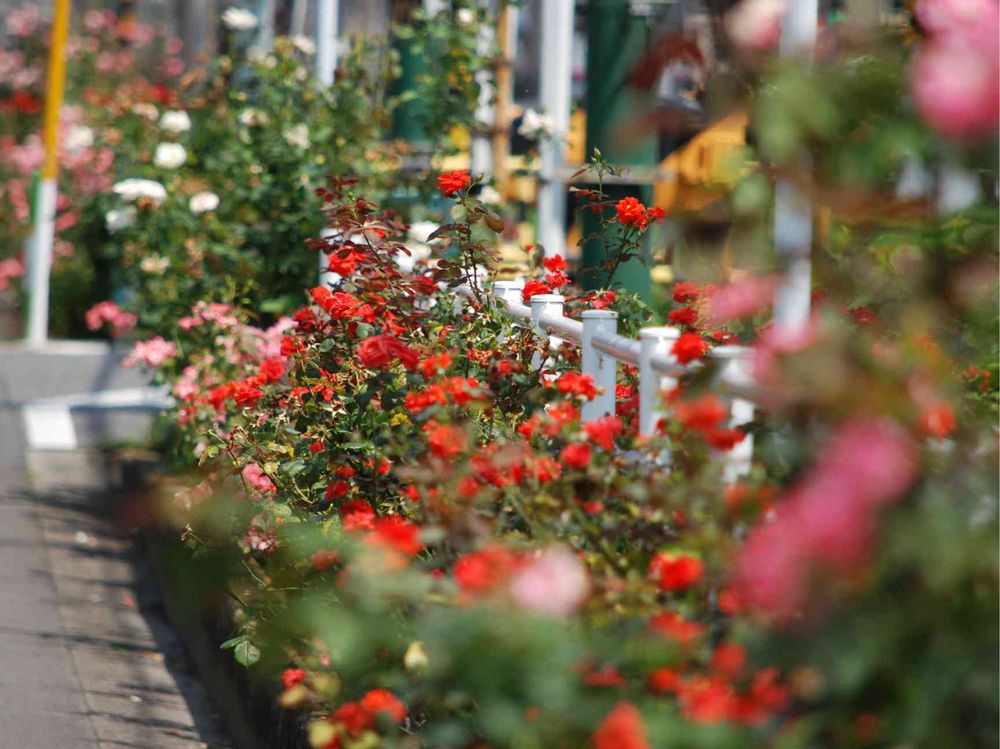 荒川区内の区間では線路両脇に数多くのバラが植えられています(1万数千株)