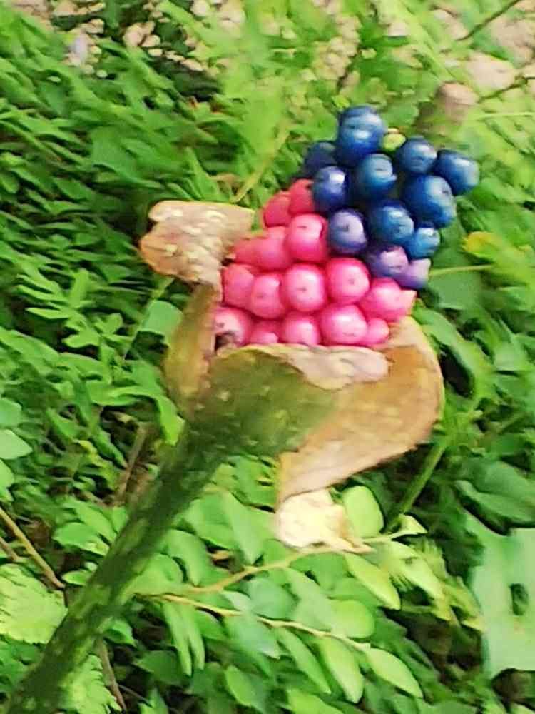果実は、紫がかった濃青にピンク色の色彩、光沢もあり 👌 ですね。