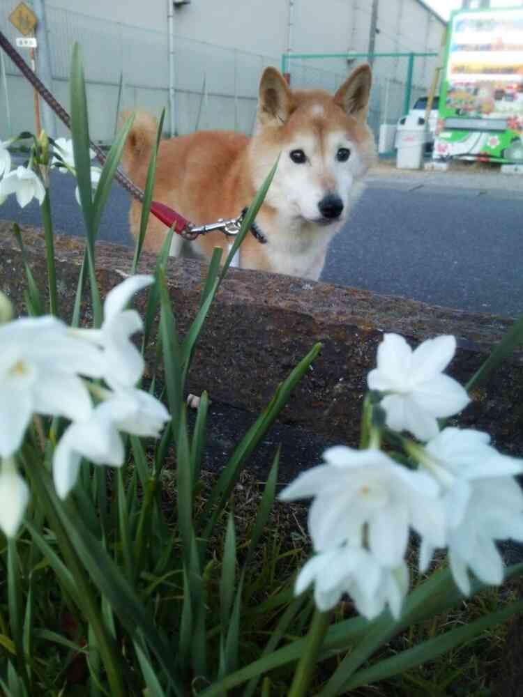 しんのすけちゃん イケワンで優しそうですね 💕 水仙も真っ白で綺麗 ✨
