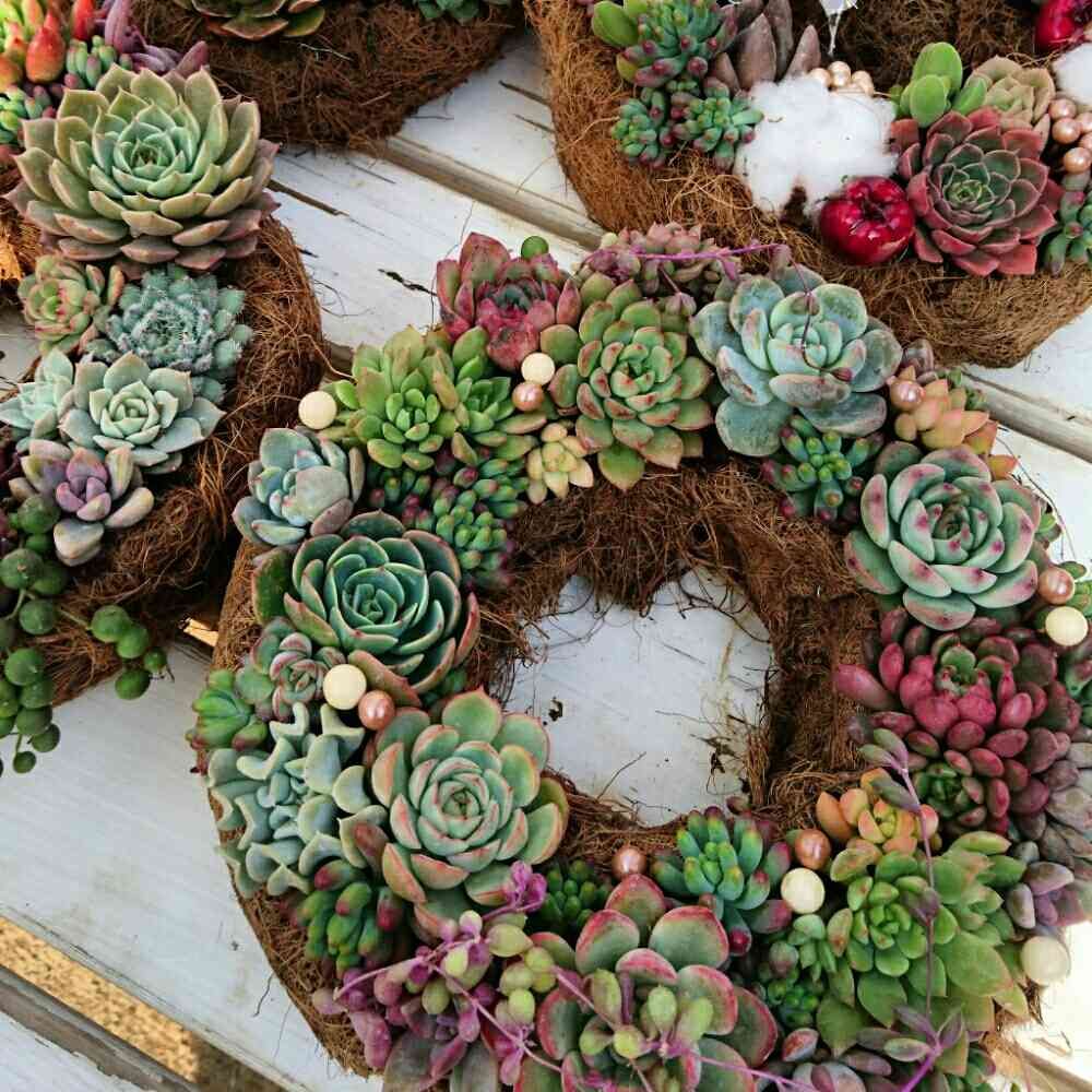 さん(*'▽'*)リースの多肉ちゃん1つ1つがキュッとしまっていてとても可愛いらしいですよね😍