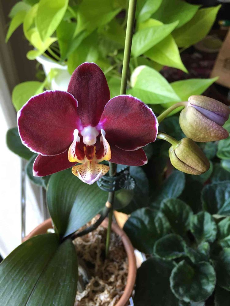 5月に100円で買った子に花芽が付いてたのが無事に咲きました。丈夫で良かった☺️💕🌱黒胡蝶蘭タイダパール