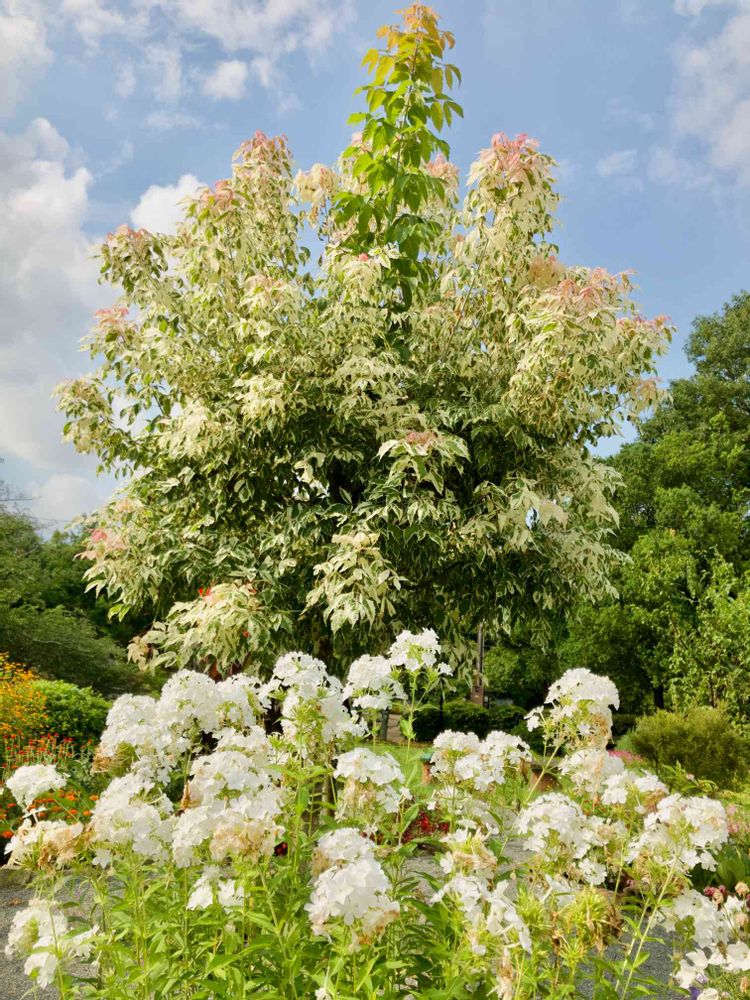 お隣の加古川市日岡山公園に散歩に出掛けました。よく手入れされた園内には、色とりどりの園芸種の花々が咲いいました。ハツユキカズラを大きくした様な“トネリコバノカエデ(カエデ科の植物の1種。別名はネグンドカエデ。)が空に映えていました。