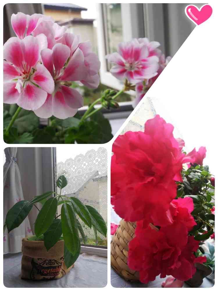 雨☔️です。今、窓辺にあるアザレア、ゼラニウム、百均で買ったブラッサイア(あー、またでっかくなってる😮)。