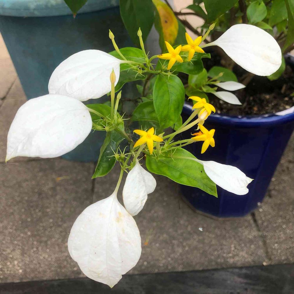 黄色⭐️が花で、白い葉は がく苞なんですね