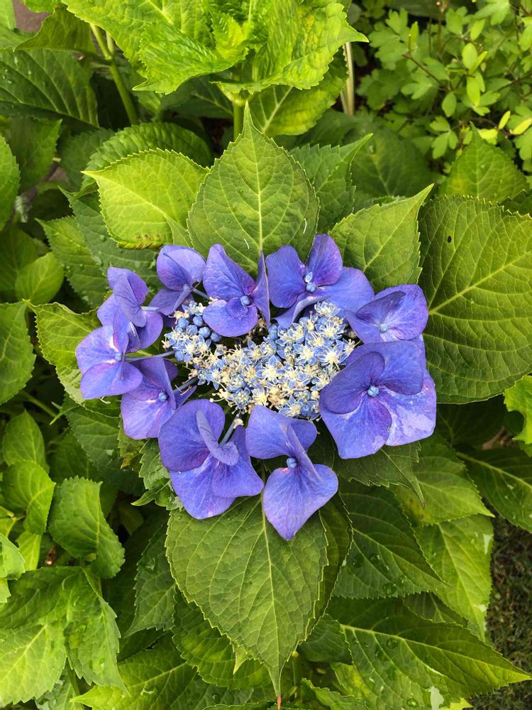 ウチのアジサイなんだかイビツとは思っていたのですが💦なんと❣️咲き進むと💙型に😆💕すごい〜ガクアジサイでは珍しいかも〜👍