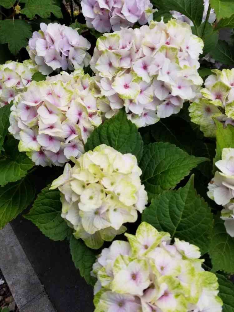 色変わりのグリーンのアジサイがピンクがかってきました。
