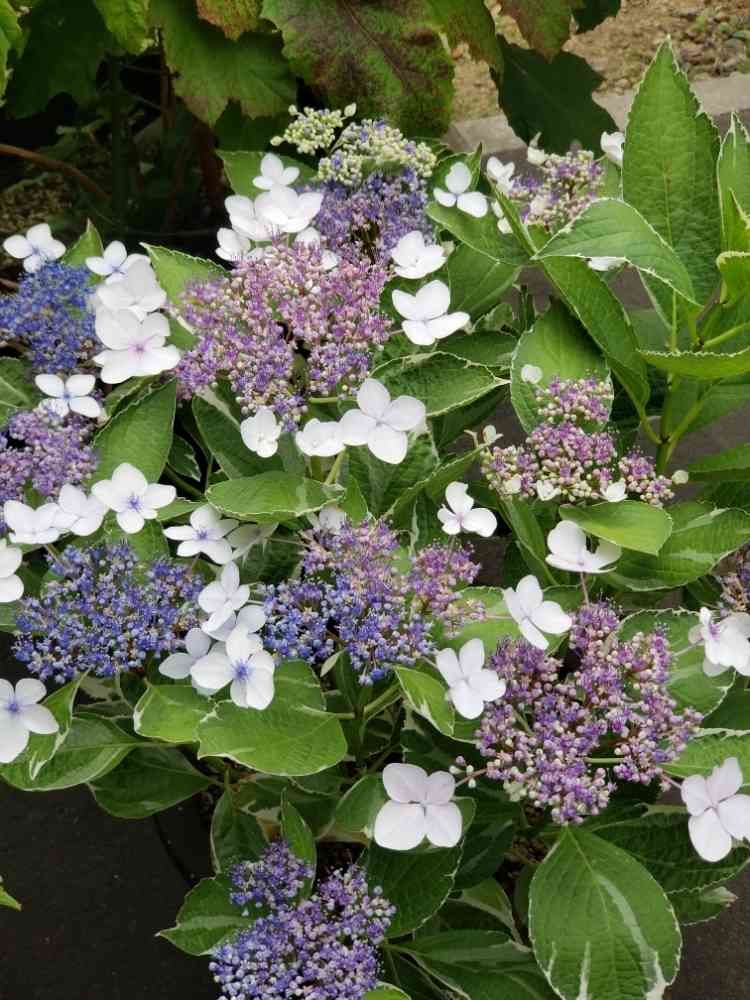 斑入りのガクイジサイが満開です。