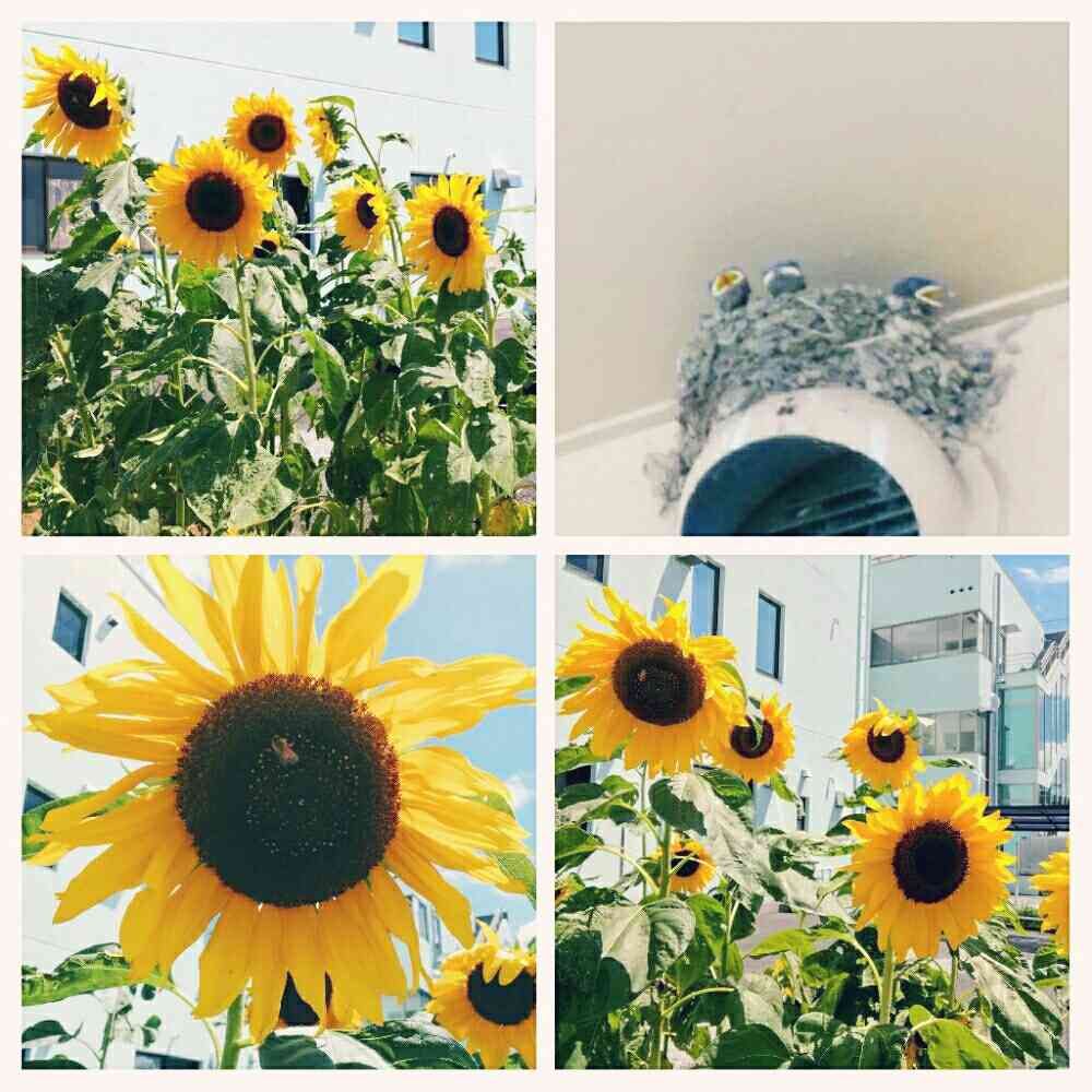 元気なヒマワリ🌻と、可愛い子ツバメ🐤ですね