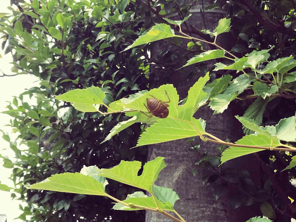 葉にしがみつく姿が