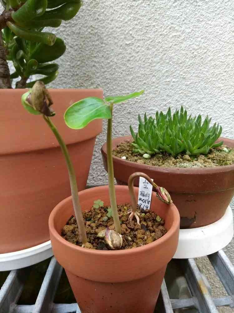 完全に忘れてたサンゴアブラギリの種から🌱芽が出てました😊
