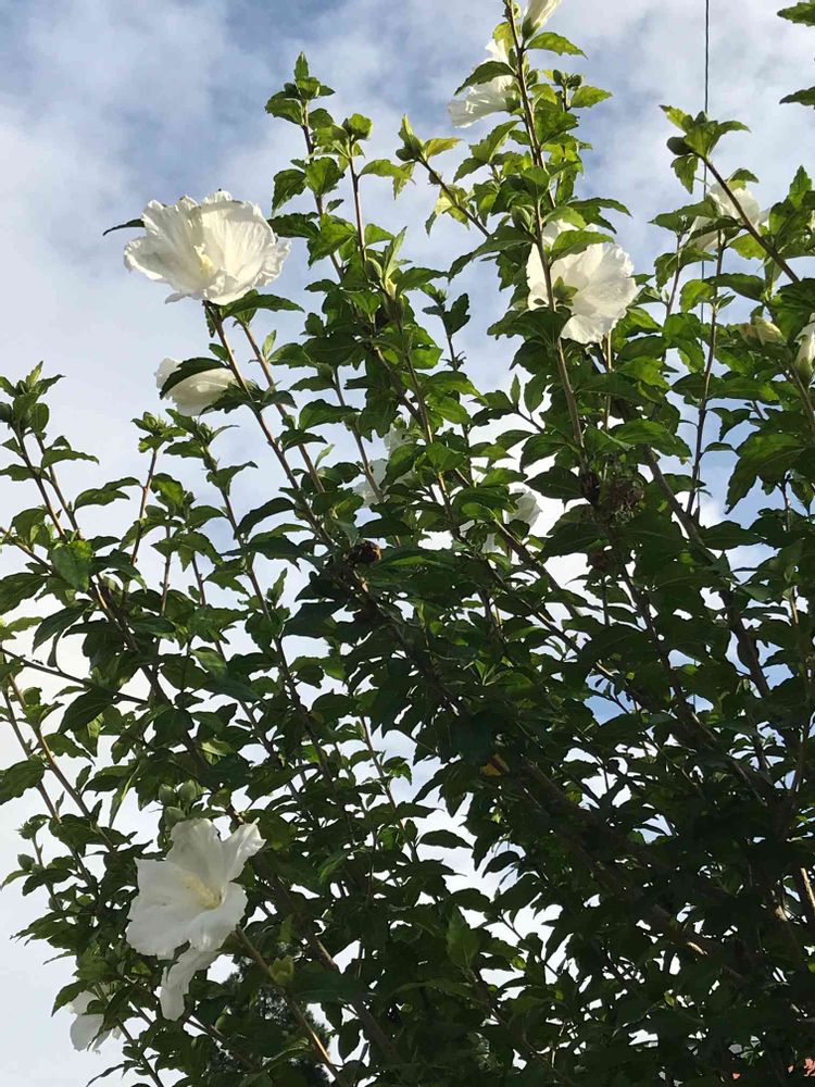 白いムクゲが咲き始めました😊