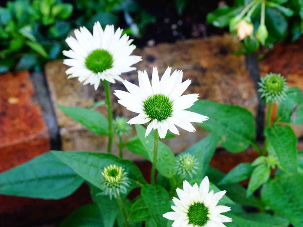 白い花弁に中心部が緑色のエキナセアは初めてです✨とても可愛くて涼しげですね💕😊