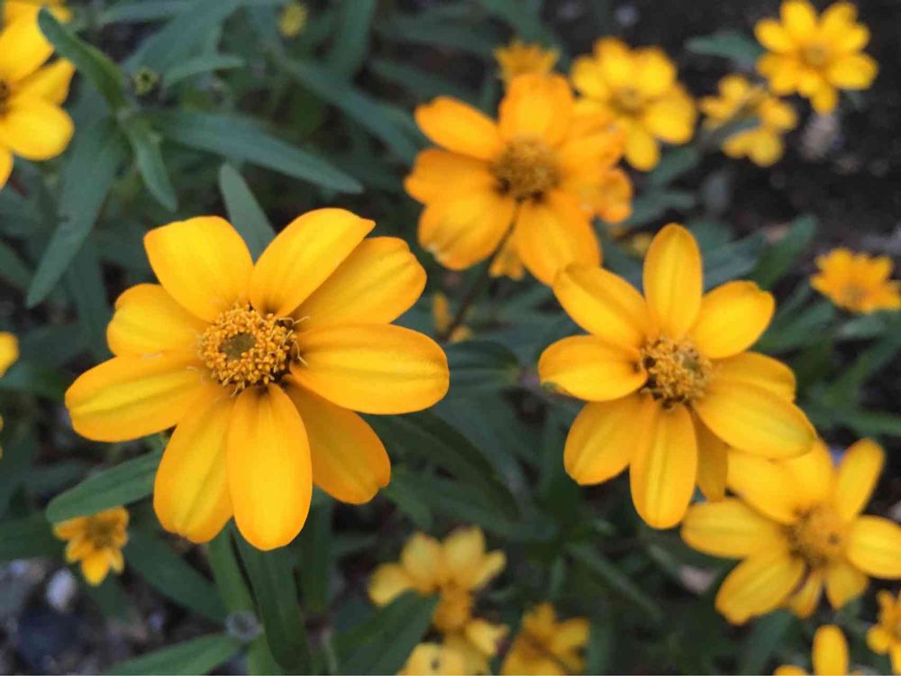 フリフリの八重咲きも好きだけど、シンプルな花びらのジニアもすてき🌼🌼