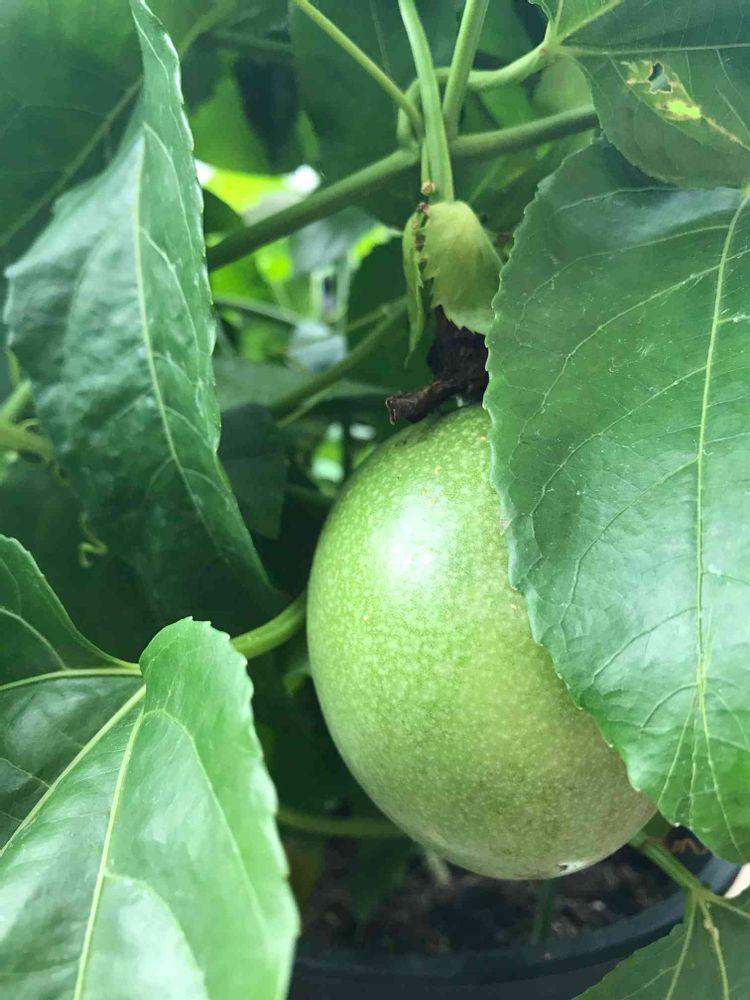鉢植えですが、パッションフルーツの実が3個付いてます 😊