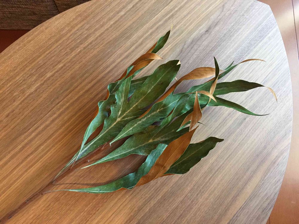 表面がグリーン、裏側がライトブラウン系な葉です。