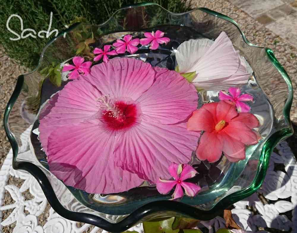 「タイタンビカス」の花がガラスの水鉢に浮かんでました❇️❇️❇️