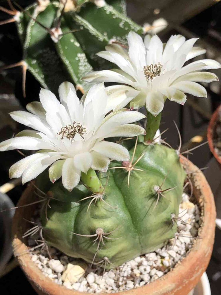 この株、半年ほど前は日焼け?の影響で萎んでしまい、トゲも枯れたりと、まあまあの重症患者っぽかったんですが、大復活してまた花まで咲かせてくれたんですよ😭