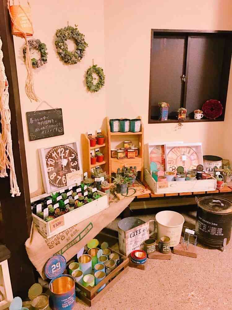 ビーズアクセサリー、曼陀羅、多肉植物、ガーデン雑貨、お花の寄せ植え、コーヒー豆、地元多賀産野菜などなど、店内いっぱいに商品取り揃えてます。