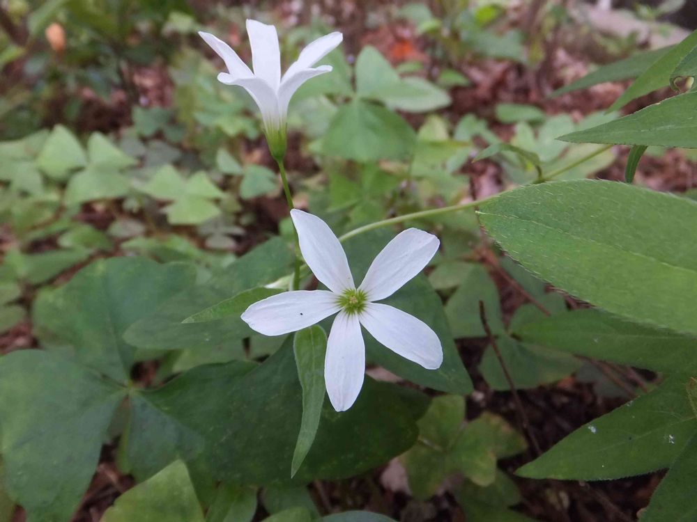 雑木林の日当たりの良い場所に白い可愛いお花が。 パチリ