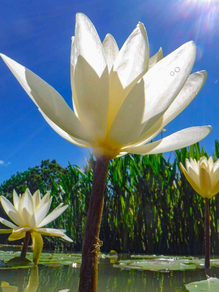 夏を謳歌しているのは、水辺で遊ぶ子供たちと睡蓮ではないでしょうか。