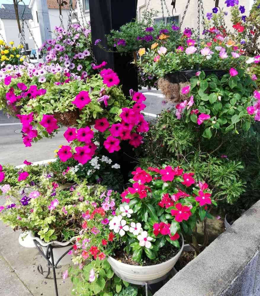 ハンギングにしたお花が綺麗だったので、お店の人に頼んで撮らせていただきました。