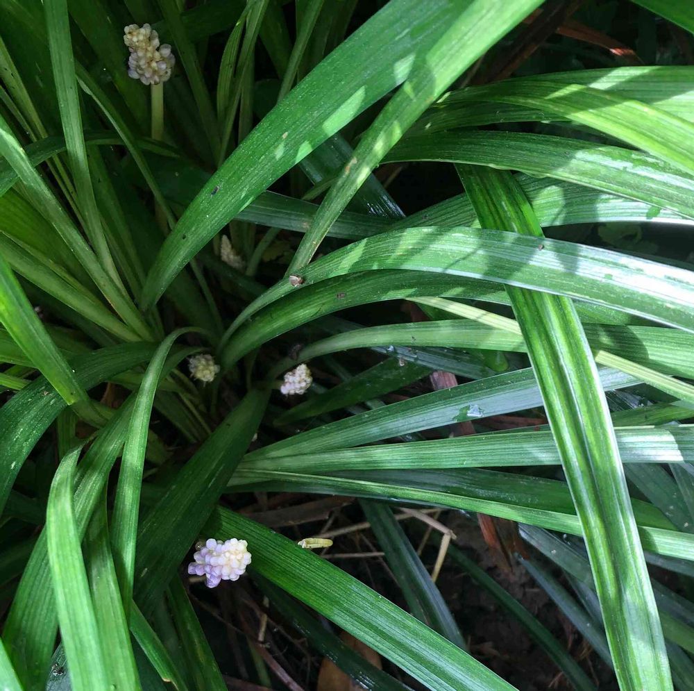 リュウノヒゲは常緑性多年草で、和風庭の日陰 グランドカバーとして 人気があるそうです。