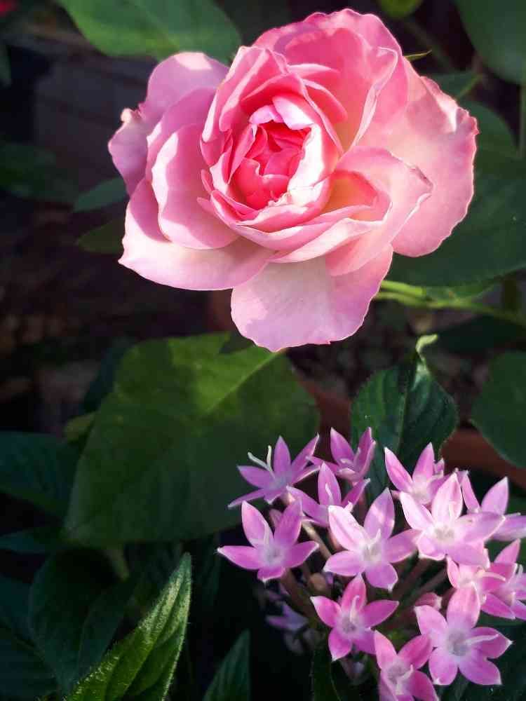 朝日を浴びるピンクのふたりの、ツーショット💗