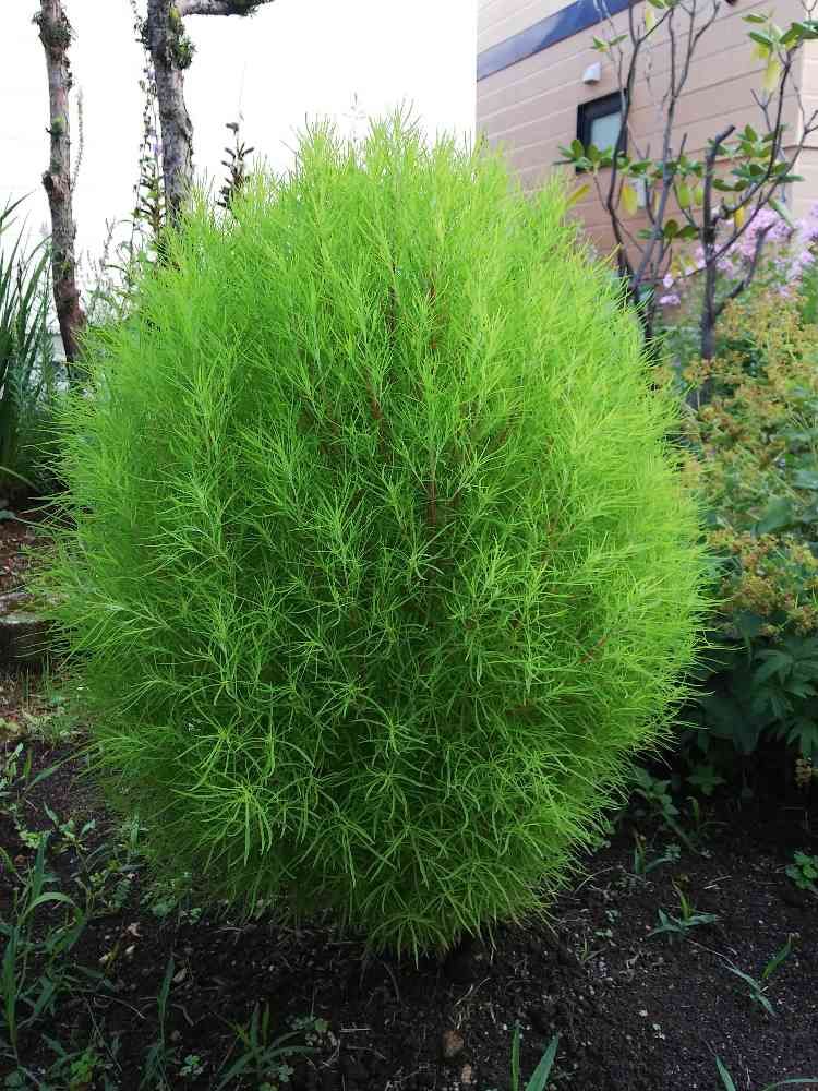 まとまって降った雨が上がったら、一回り大きくなっていた我が家のコキアさん。初めて夫が「欲しい」と言って今年仲間入りしました。一番可愛がられています。他の花も可愛がってくれー😬