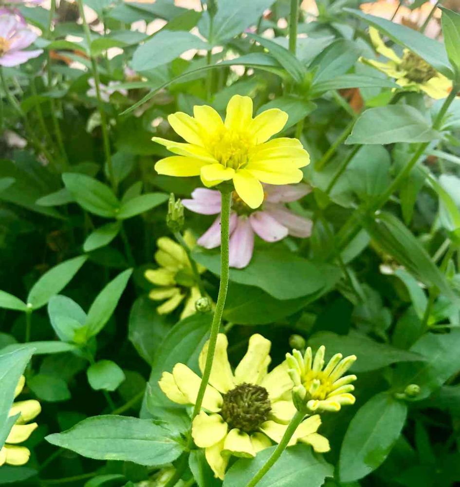 ジニア、はじめて聞きましたが、様々な色合いを組み合わせて、きれいな花壇に仕上がっていて目を惹かれました。