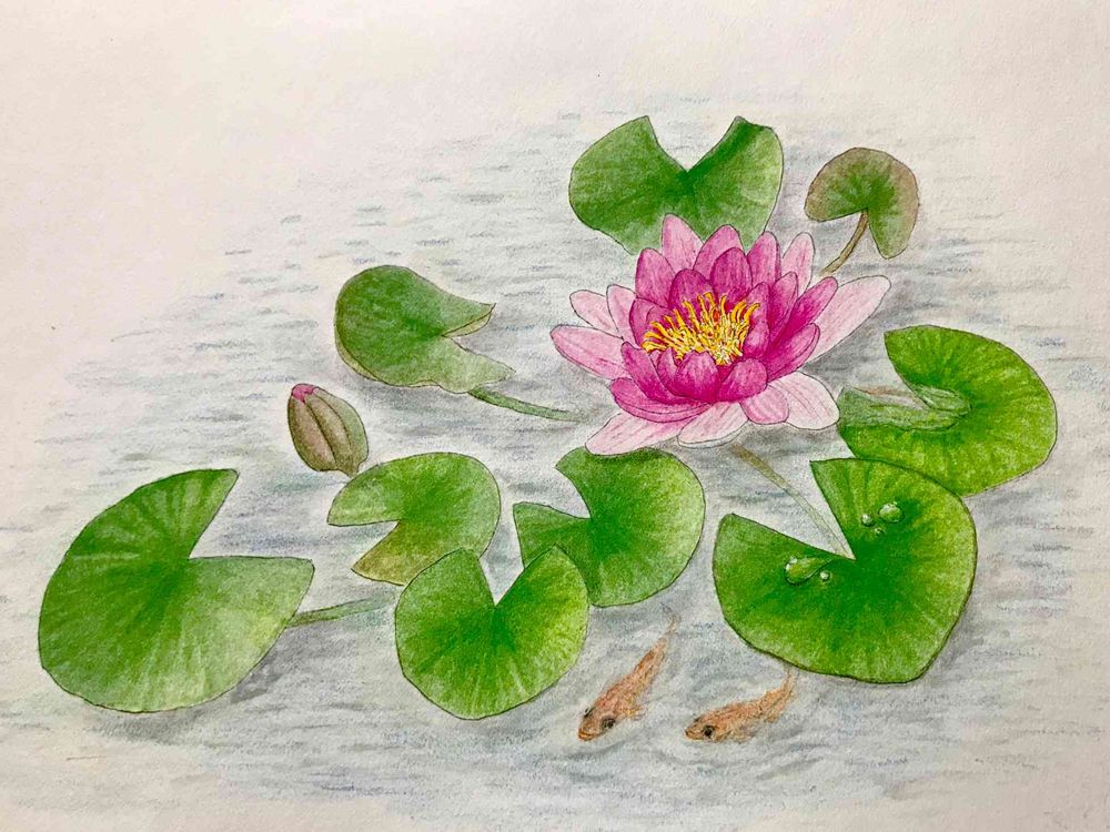花🌸がまだ咲かなく、仕方ないのでスイレンを購入した時、添付されていた写真を参考に描いちゃいました。