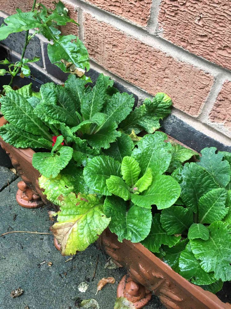 9月に株分けを見込んで陽に当てているプリムローズですが、花が咲いてきた。なんで今頃😯