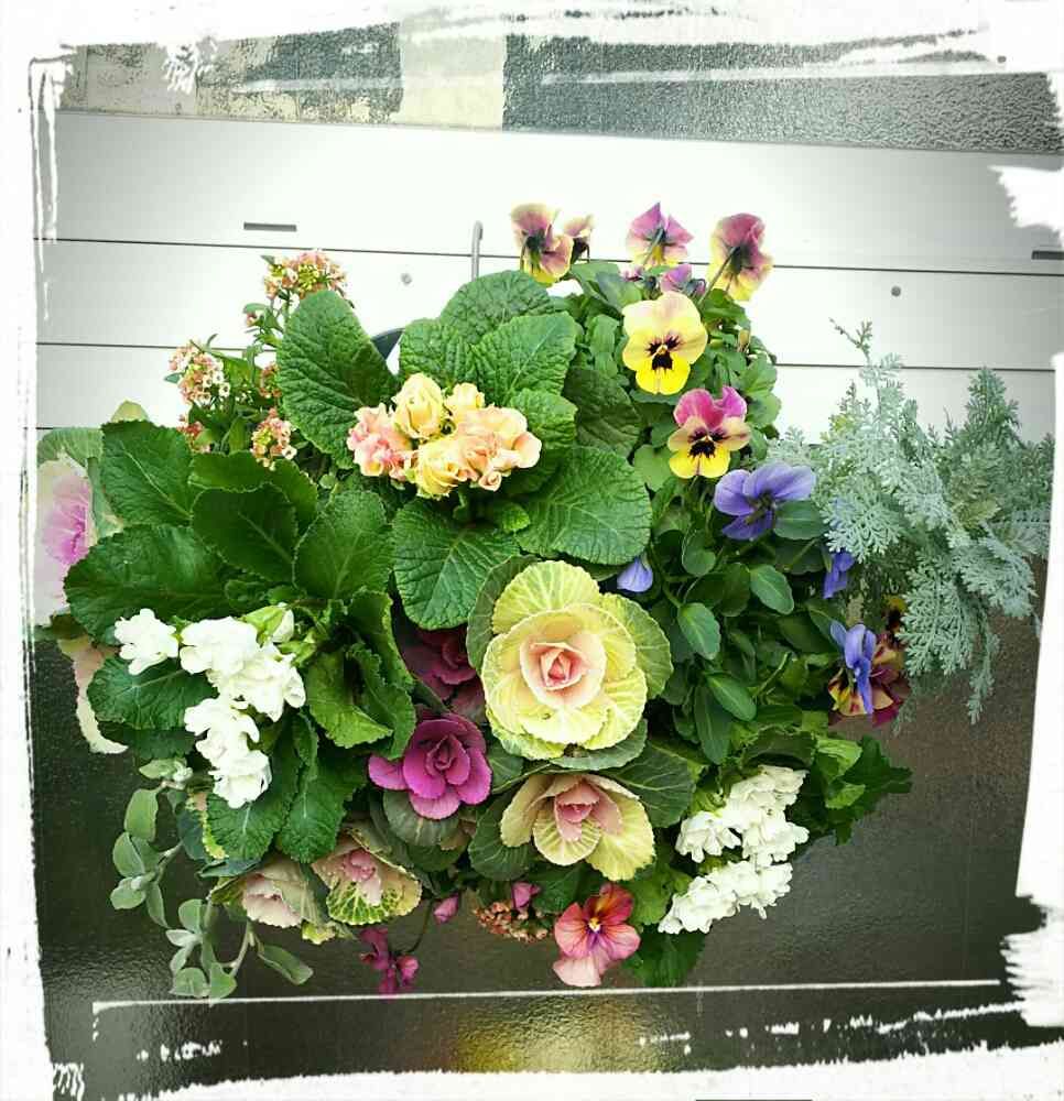 葉牡丹を中心にしたお客さまご注文のハンギングバスケット🌹by お店の奥さん🎵