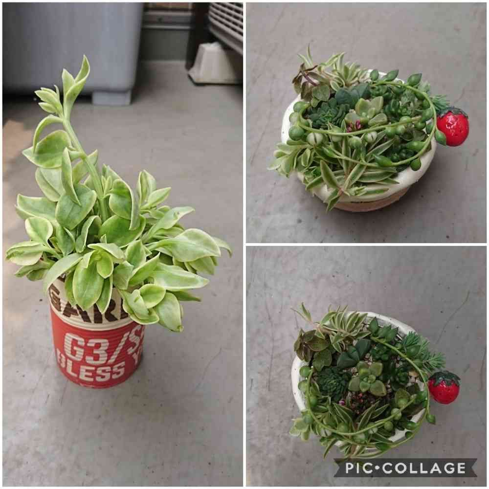 サニコさんから送って頂いたベビーサンローズはじめ、いちご缶に入っていた苗を寄せ寄せしました😆🎵ちなみにベビーサンローズを植えたリメ缶は、先日いちごさんから頂いたもの(*´ω`*)💕何を植えようか考えていた矢先なので、すぐに決まって万々歳😉✨