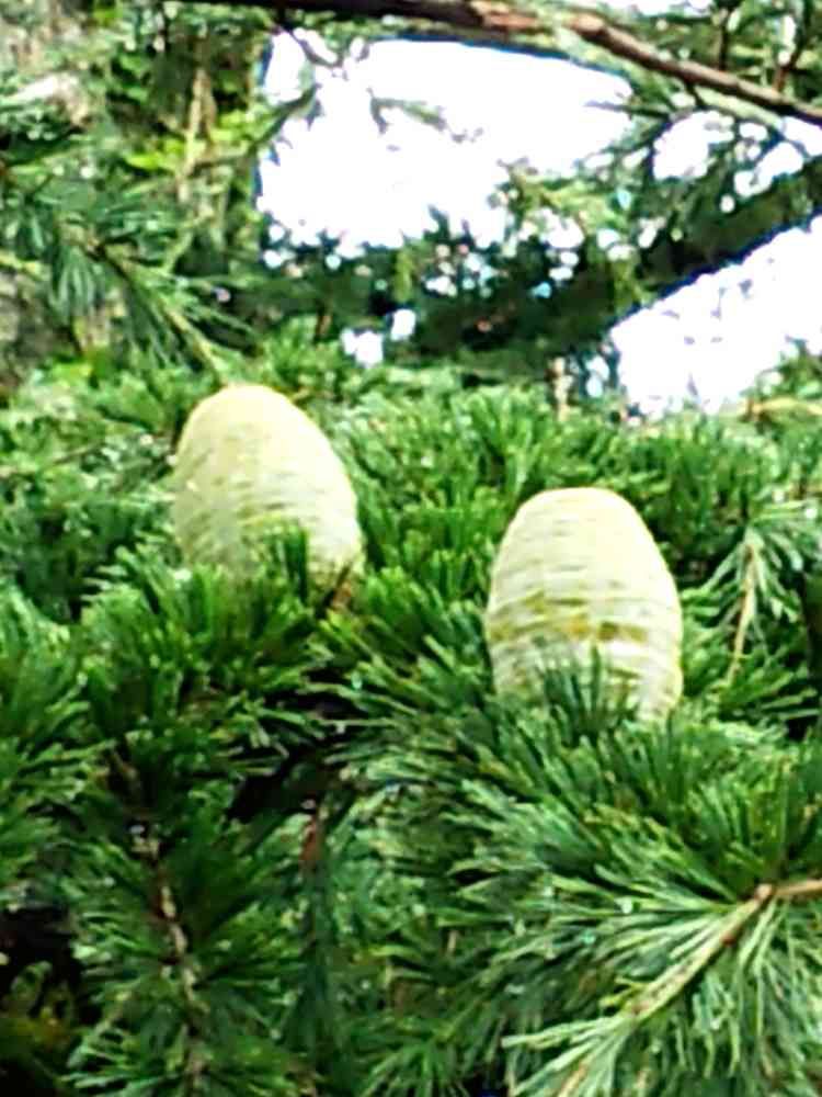 大きなヒマラヤ杉に、翡翠色の綺麗な球果(松ぼっくり)を見つけました。
