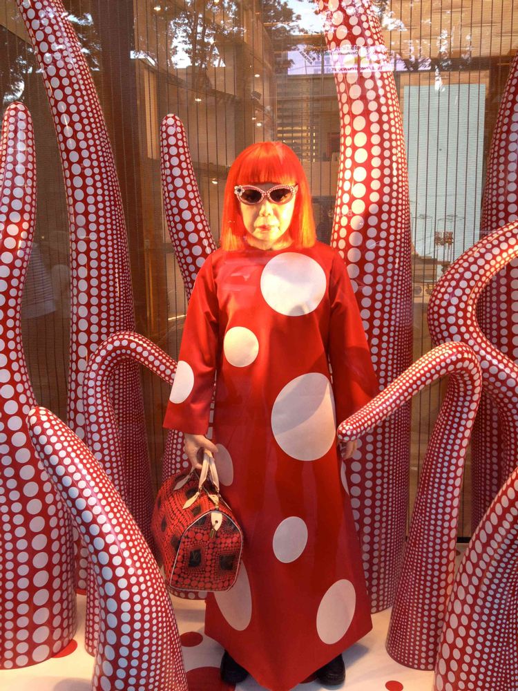 以前の写真でスミマセン。え?ハロウィンでも植物でもないじゃないかって??? 草間作品を見ていると植物の『維管束(イカンソク)』を思い出しませんか?理科で習ったあの筒状の組織。(私だけ!?) それにハロウィンに草間オバチャマがこんな格好で現れたらステキじゃないですか!