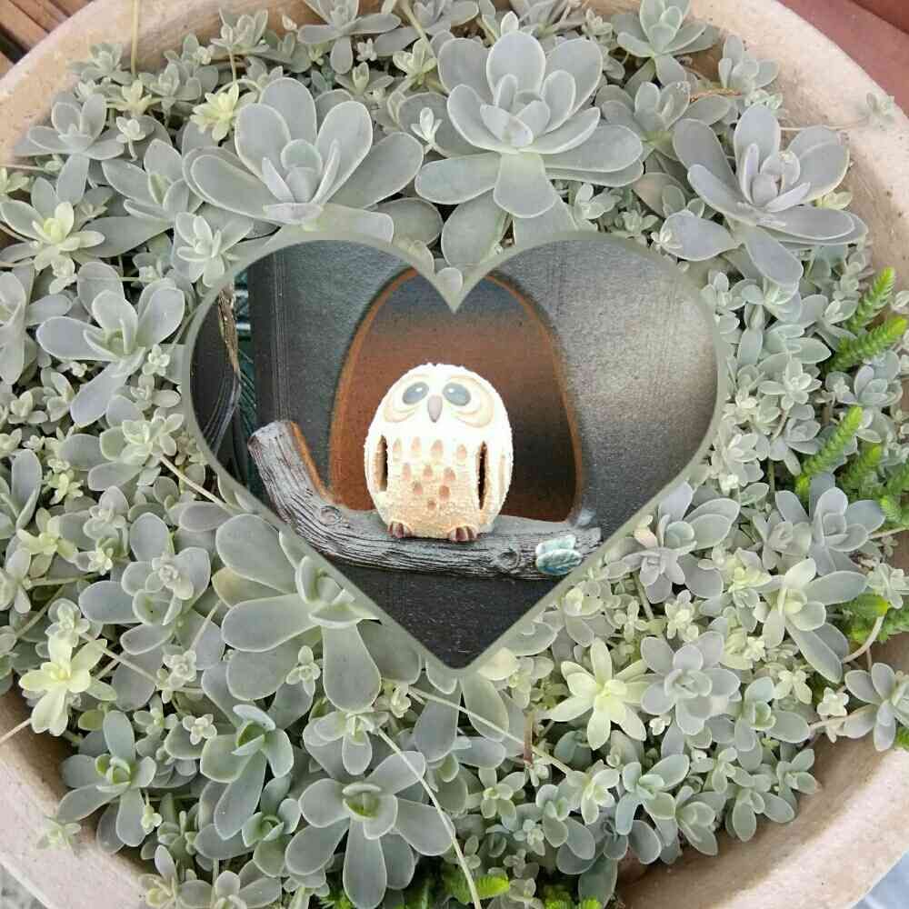 斑が消えてしまった子持ち蓮華さん&信楽焼のフクロウさん🎵