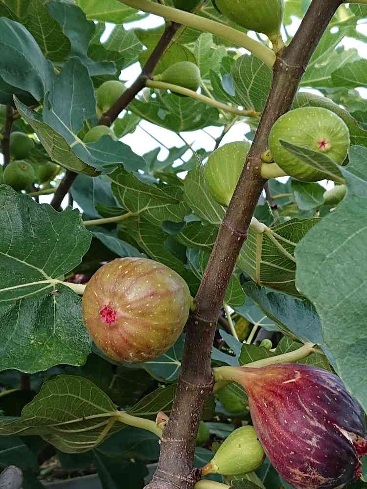 わ〜〜🥰イチヂク!!イチヂク❗️わたしも育ててまーす。このpicの中で収穫ピッタリはどれですか?去年買い求めて2月に植え替えて未だ青いんです、去年は3個獲りごろわからず下に落としたり蟻にたかられたりでした今年はネットかけました^_^