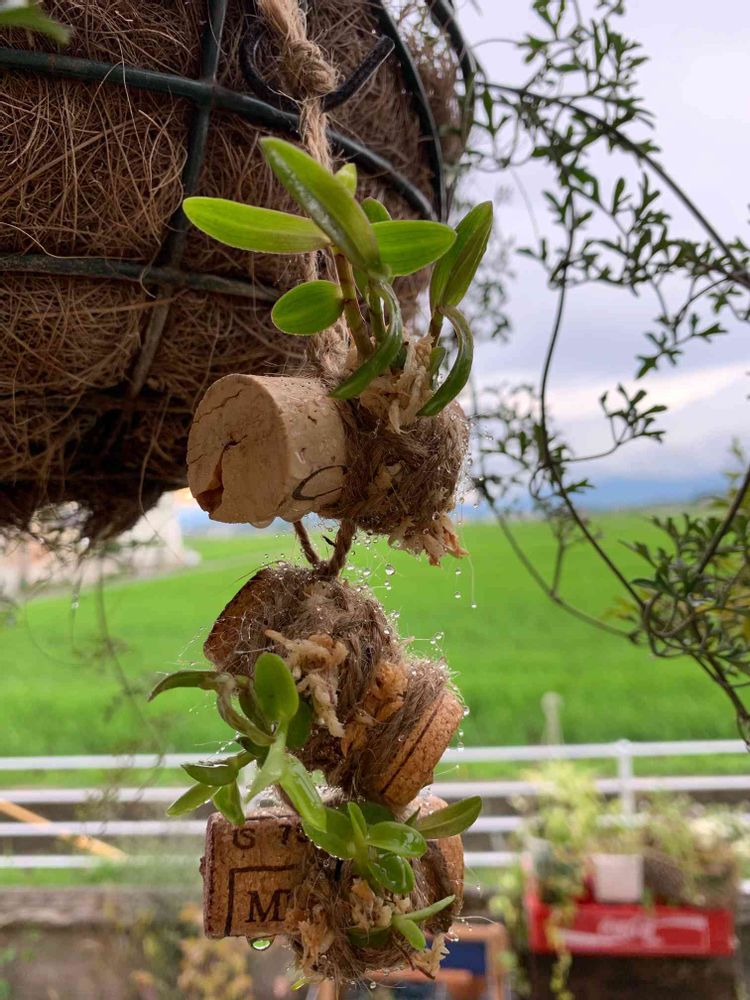 デンドロビウムの高芽をコルクに付けてぶら下げて〜🌱🌱🌱