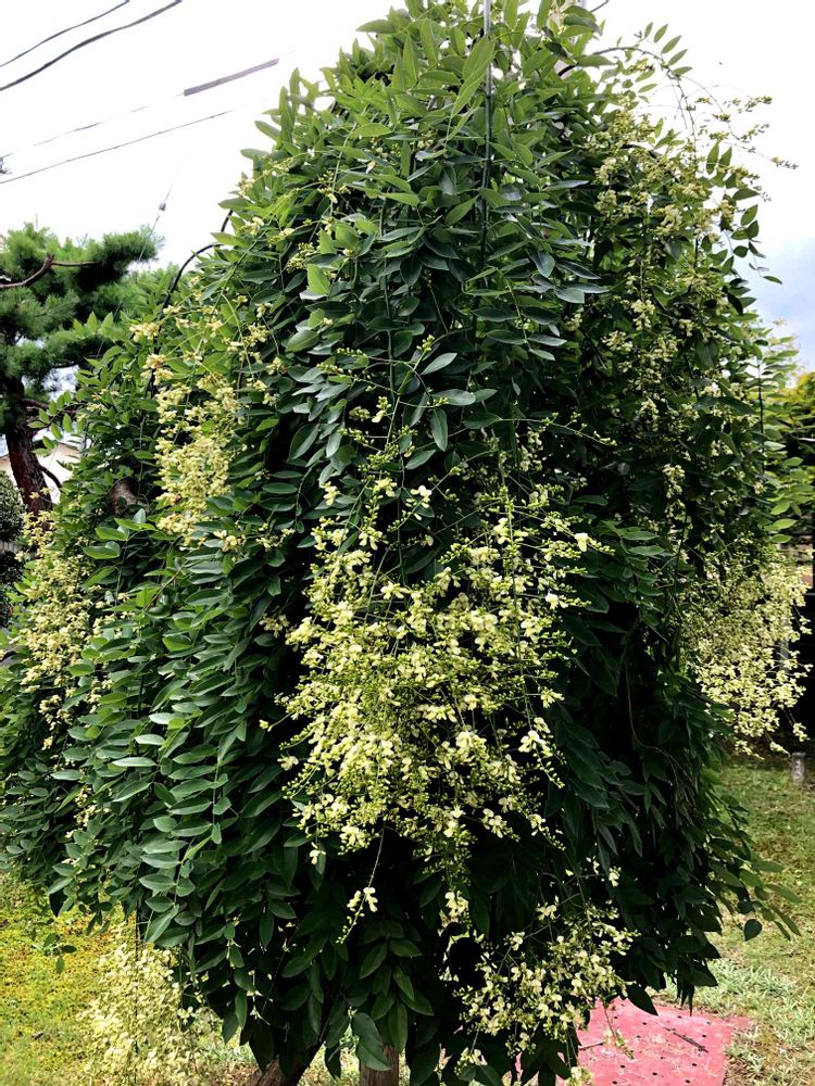 幹が天辺でグニュと曲がって枝垂れてます。槐だけど名前に枝垂れが付くのかな?