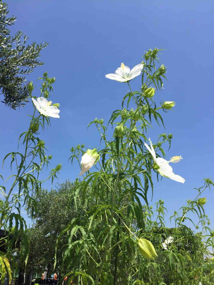 青空に映える白花モミジアオイ