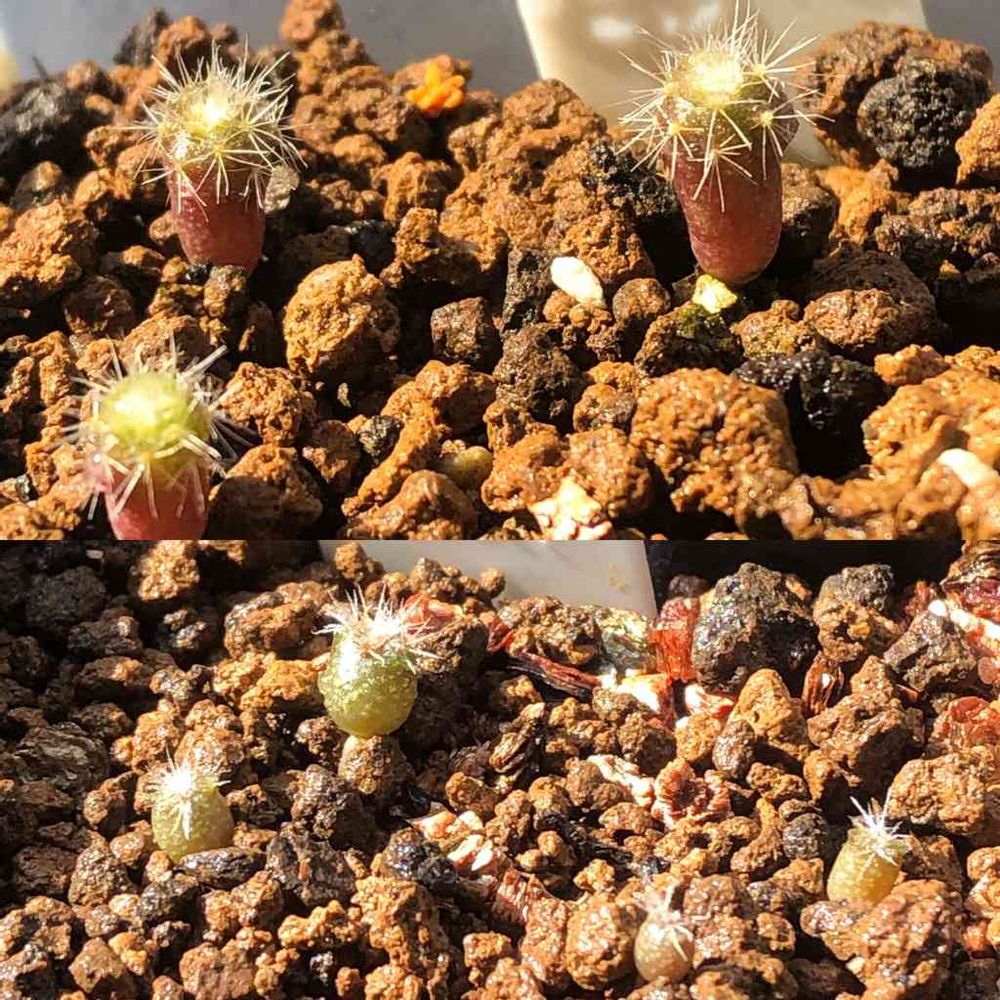 発芽から1カ月程度です。ペクチは最近らしくなりましたがグリセオビオラセアは成長が遅いらしく播種から2カ月の今とあまり変わりないです。士童くんも成長遅いタイプなのでしょうか?肥料は与えておらず、直射日光は避けてベランダの明るい日陰で育てています。