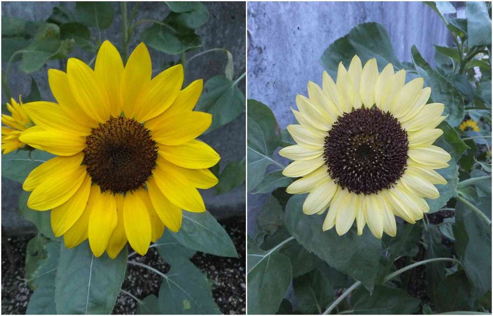 薄黄色のヒマワリ、珍しいのでパチリ、比較で普通のヒマワリもパチリ