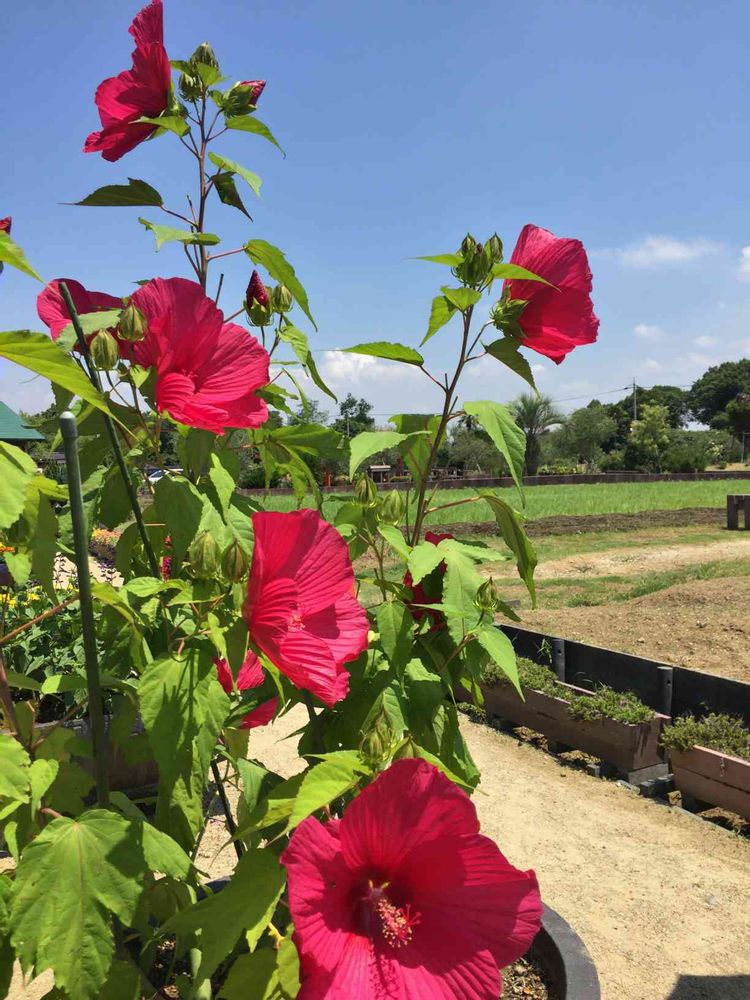 暑いですが、真っ赤なお花も青空の下だと、綺麗に見えますね〜❣️