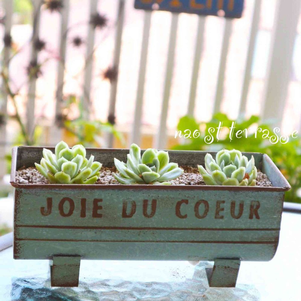 冬のまん丸な姿もキュートですが夏のさわやかなグリーンも可愛いエケベリア3兄弟(名前はわかりません😅)💕