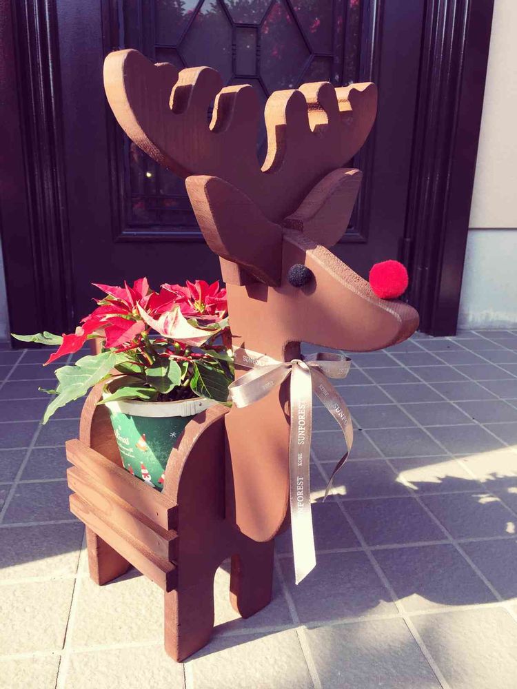 トナカイを作りました☆彡クリスマスに間に合って良かった😅多肉さんを飾る予定でしたが、やはりポインセチアかなと🤔