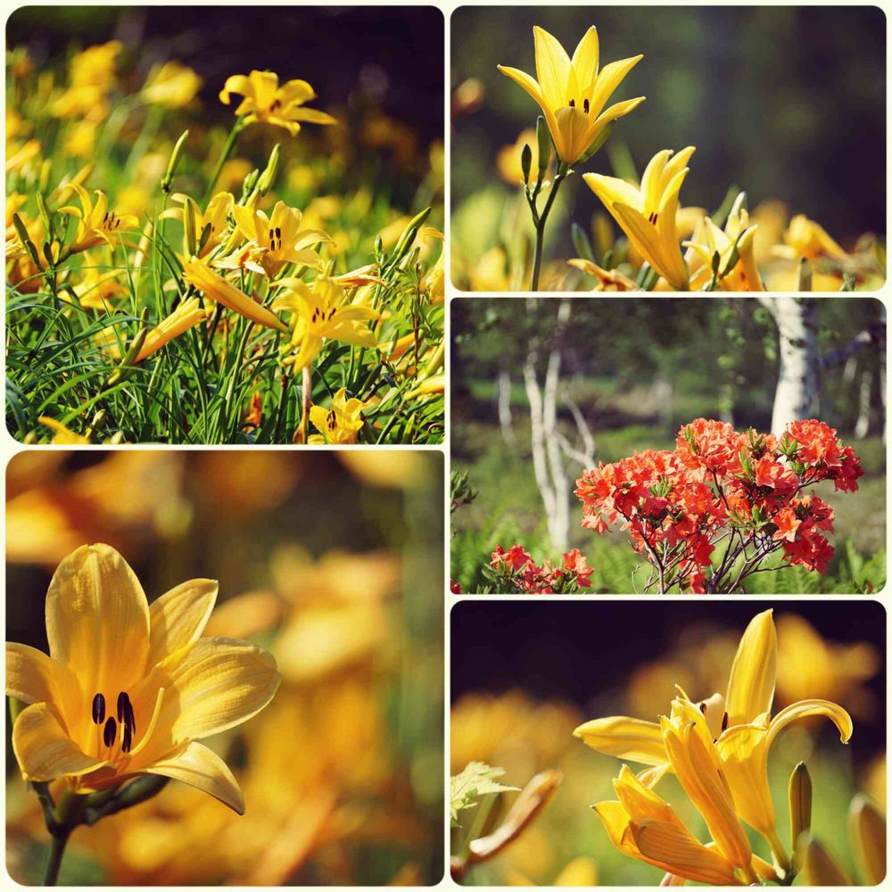 尾瀬に咲いたニッコウキスゲ、オレンジは、レンゲツツジ。