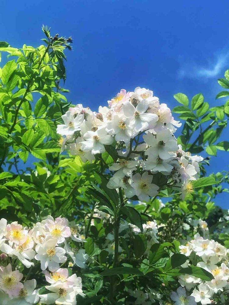 青い空と白バラ映えます😄